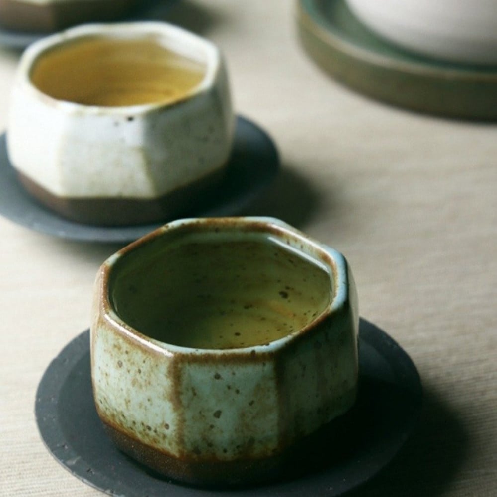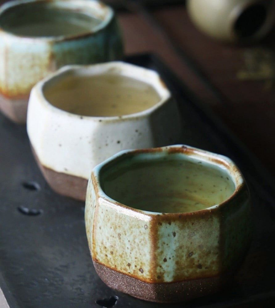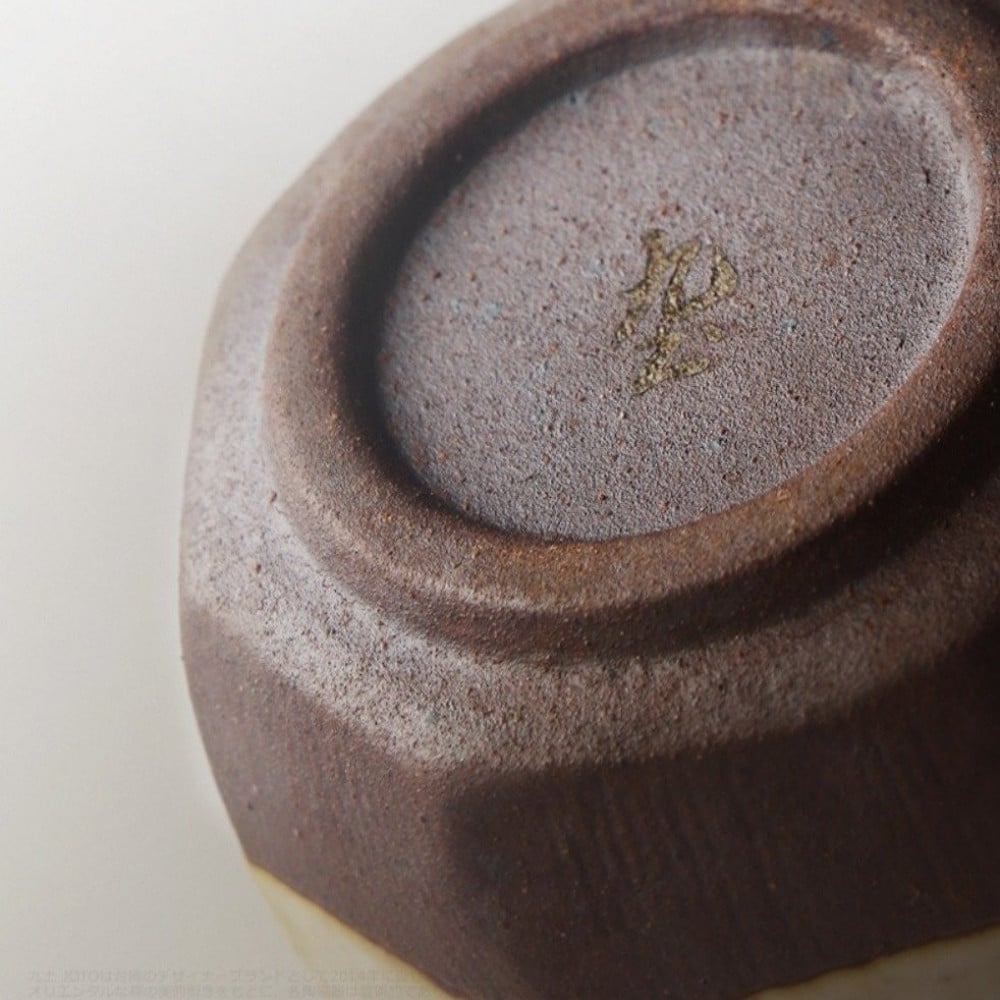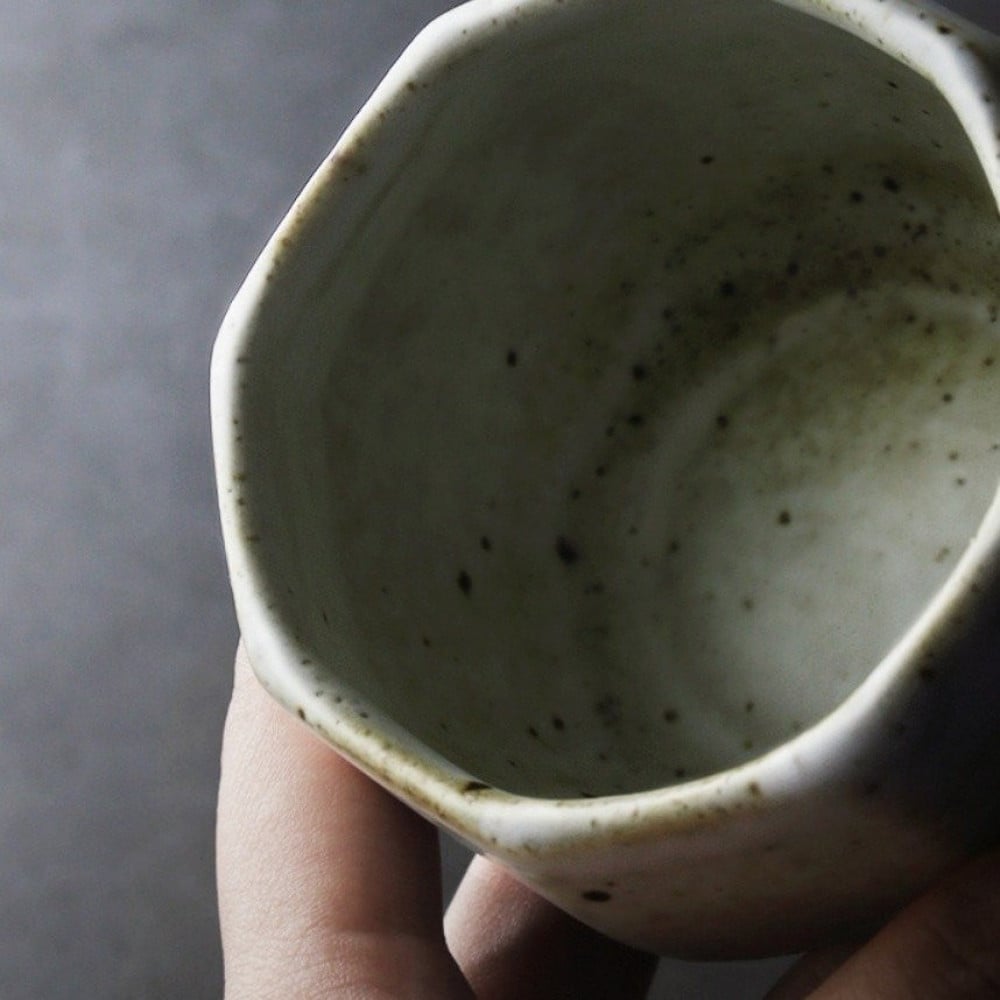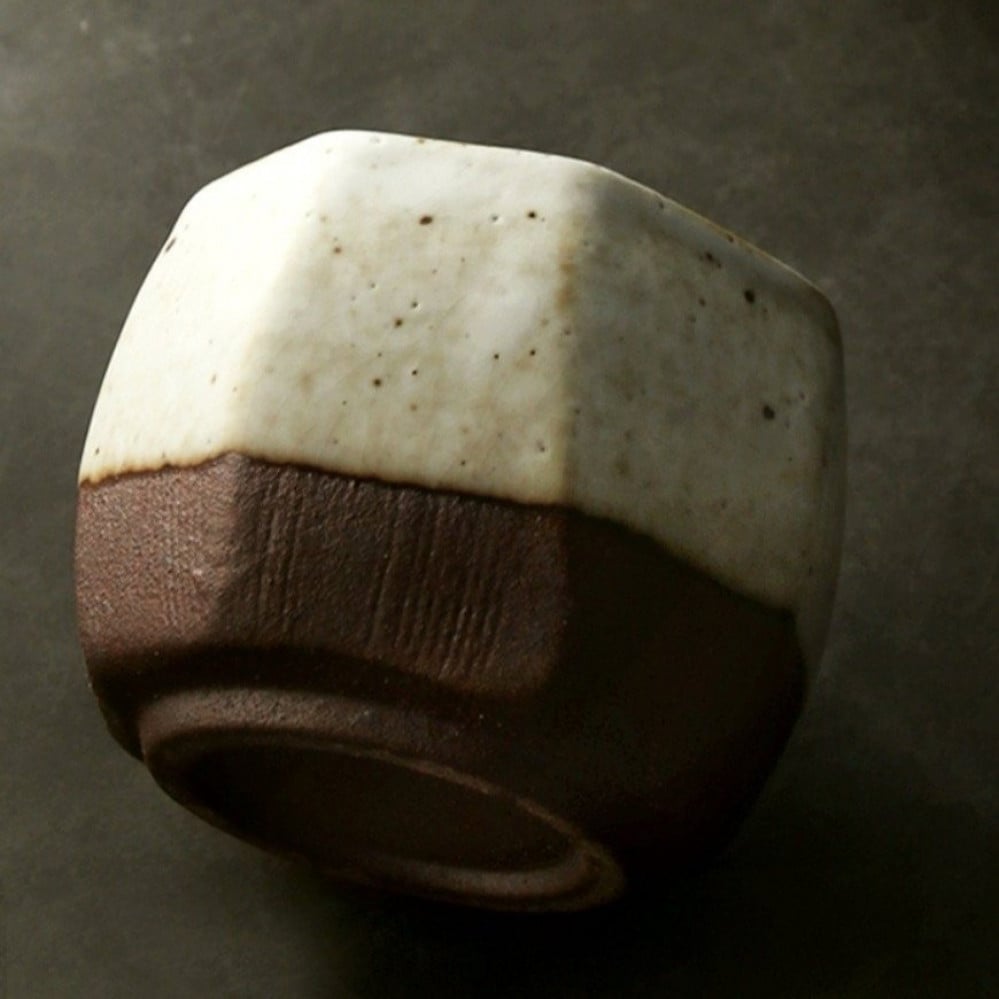 كوب فخاري يدوي الصنع بيور بشكل مضلع مقسم يندمج اللون الابيض او الازرق من اعلى مع الفخار الطبيعي من اسفل الكوب جوده عاليه جدا أنيق ومميز..