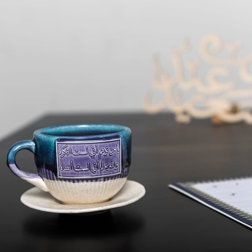 كوب "يا مَن تَوَّهَمَ أَنّي لَستُ أَذكُرُهُ وَاللَهُ يَعلَمُ أَنّي لَستُ أَنساهُ"
